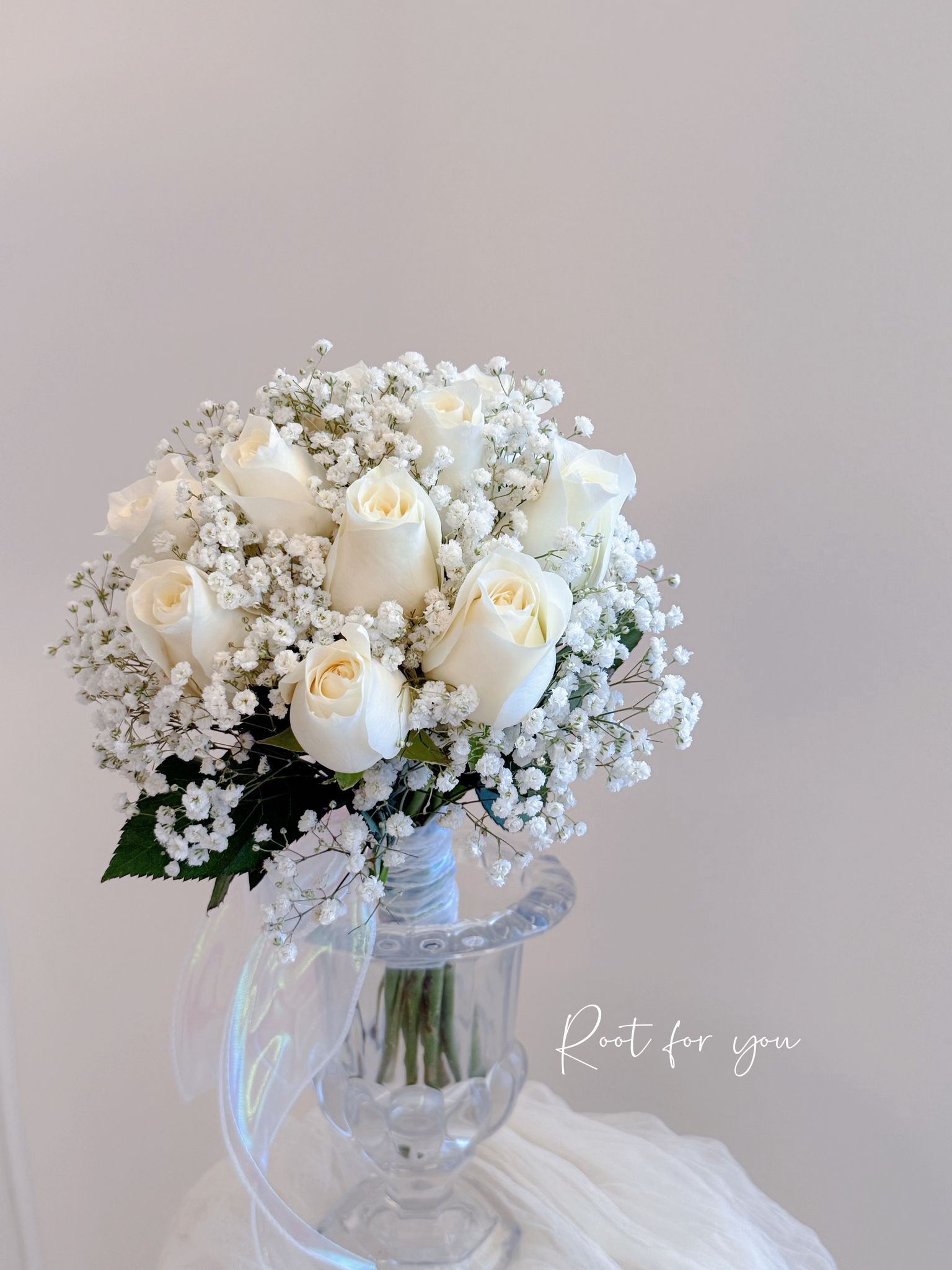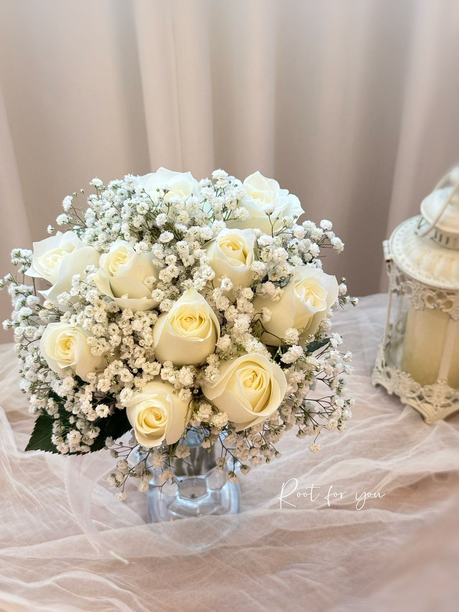 A timeless blend of pristine white roses and airy baby’s breath, thoughtfully arranged into a soft, romantic silhouette.